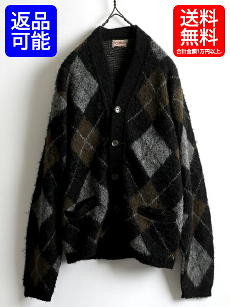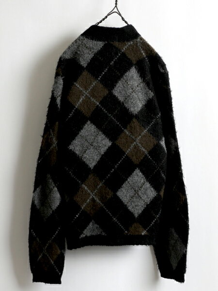 60's ビンテージ ボーイズ 18 ★ McGregor マクレガー アーガイル 柄 アクリル ニット カーディガン ( キッズ 子供 ) 60年代 ブラック| オリジナル USED ユーズド 中古 グランジ 黒 グレー 灰 総柄 ミックスカラー マルチカラー 長袖セーター メンズ 男性 XS トップス