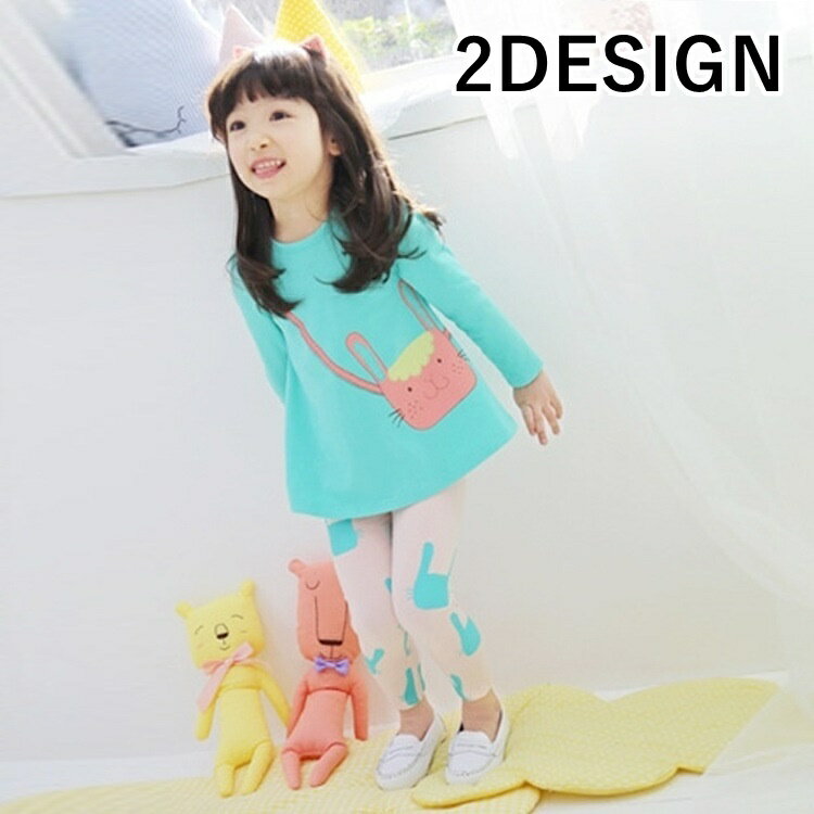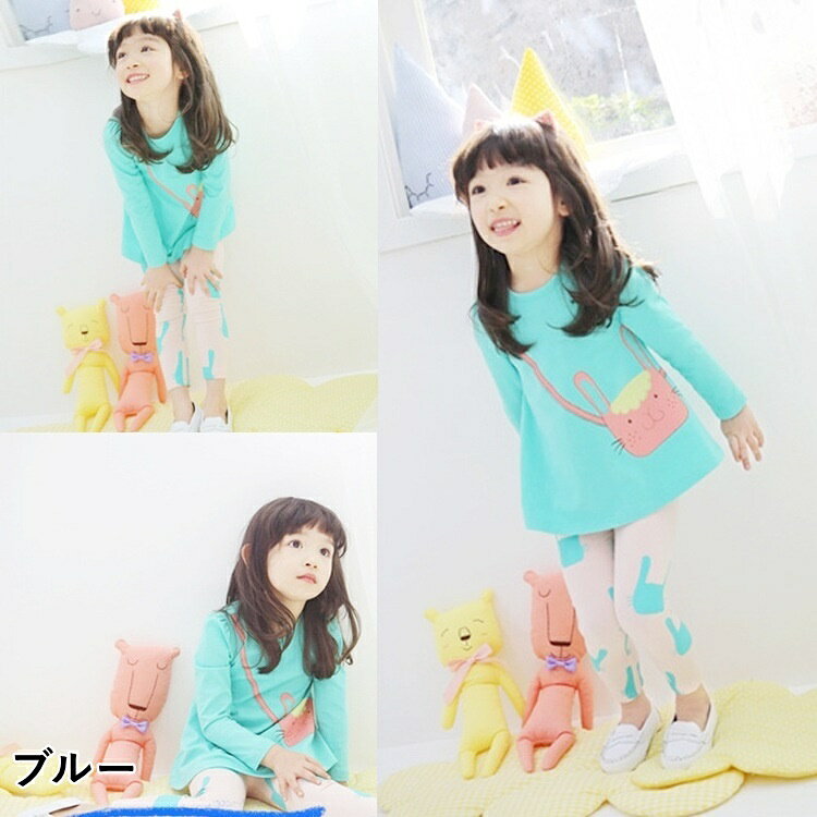 送料無料セットアップ 長袖Tシャツ カットソー ロンT レギンスパンツ トップス ボトムス プチプラ 子供服 女の子 女児 キッズ 小学生 キャラクター うさぎ ラビット 可愛い おしゃれ 上下セット ルームウェア 部屋着 100cm 110cm 120